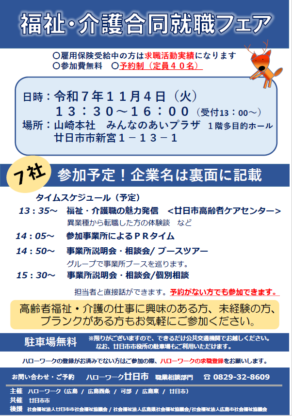 福祉・介護合同就職フェア(廿日市市)