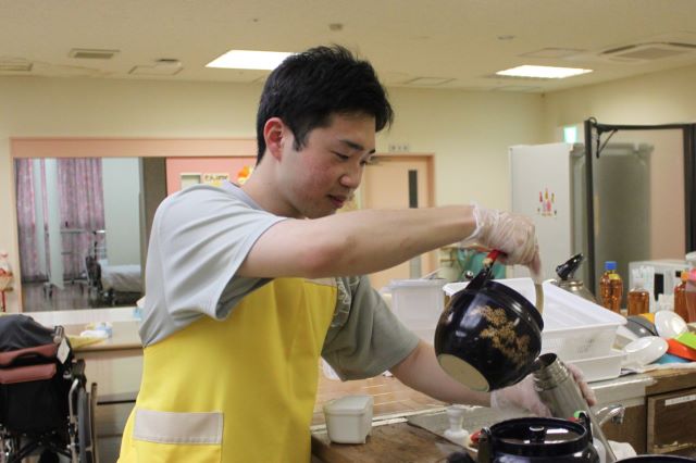 14:00介護業務 利用者様のオムツ交換や水分補給など、あっという間に時間が過ぎていきます。