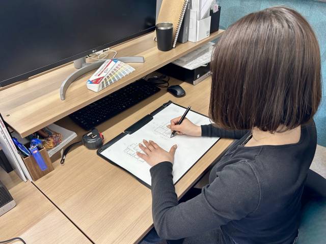 - 20代、30代のスタッフを中心に和気あいあいとした雰囲気です。 役員との距離も近く何でも相談しながら進められる環境。 半期に一度、各自目標設定を行い目指すキャリアを明確にしながら仕事に取り組むことが出来ます。 設計チームは女性2名です。住宅や建築に興味があれば専門的な資格や知識がなくても大丈夫です。 指導に当たる先輩社員も入社1年で小規模工事の打ち合わせや積算をこなしています。 先ずは先輩に同行して業務内容を知りながら出来る内容から取り組んでいただきます。
